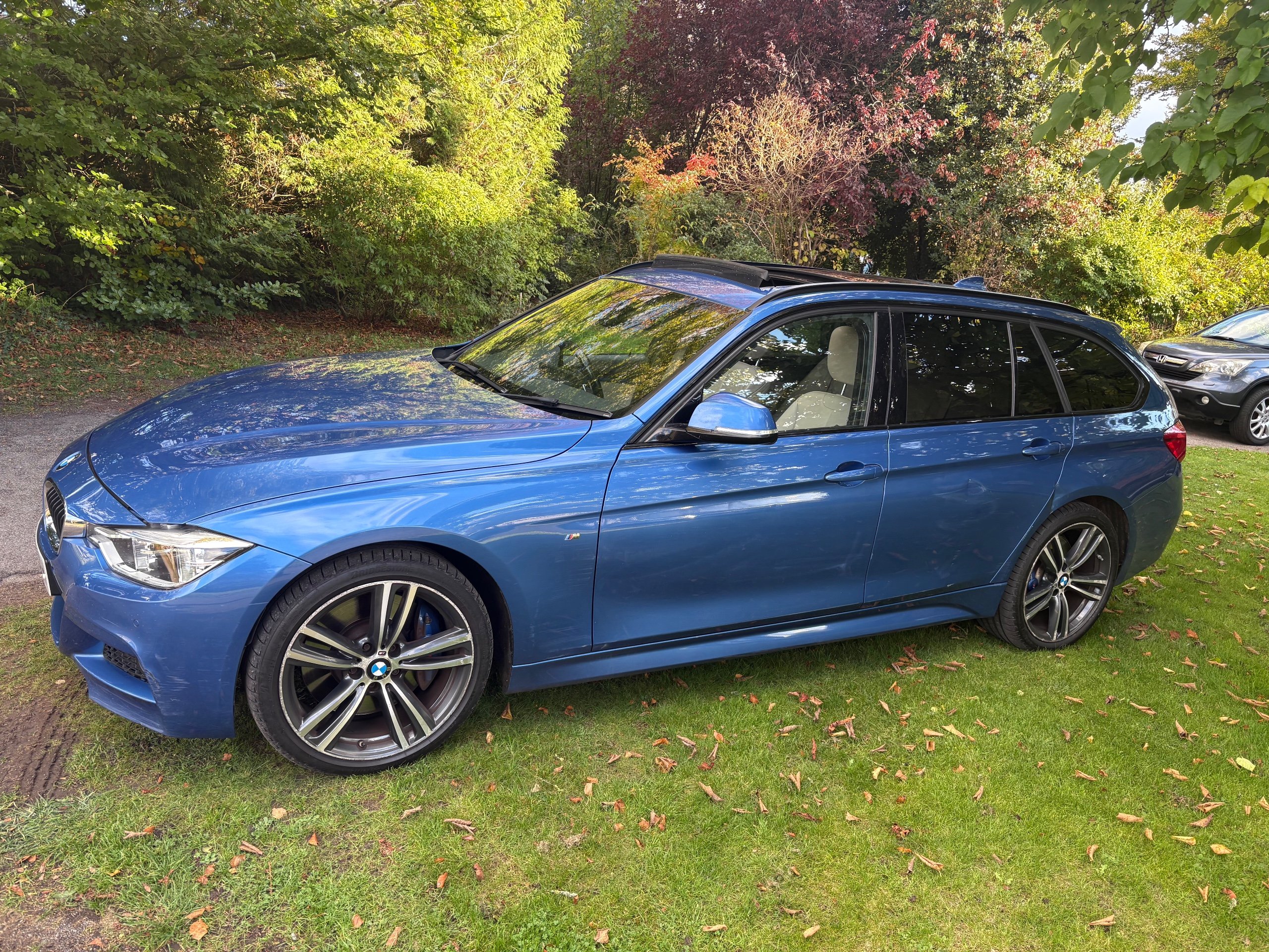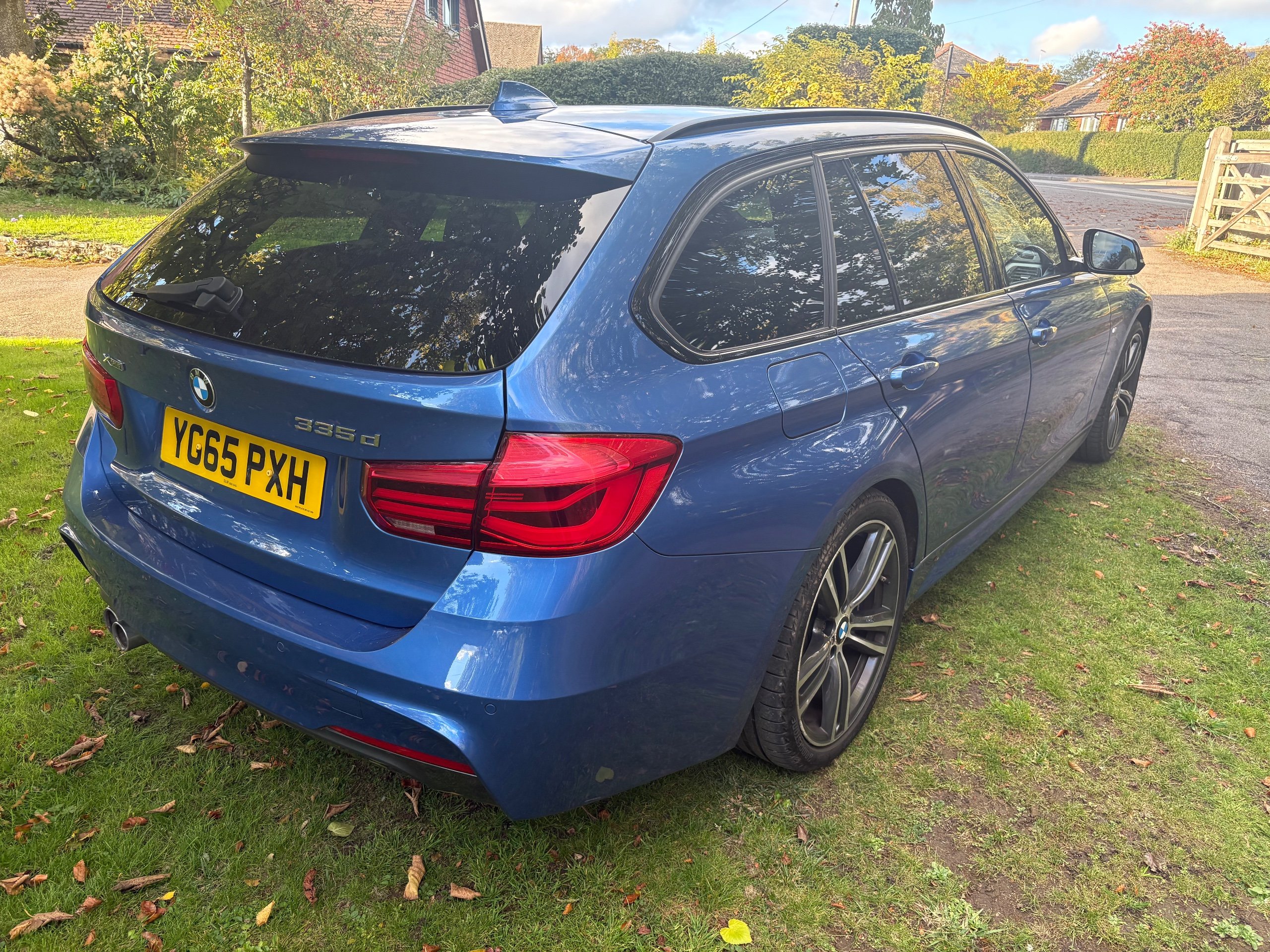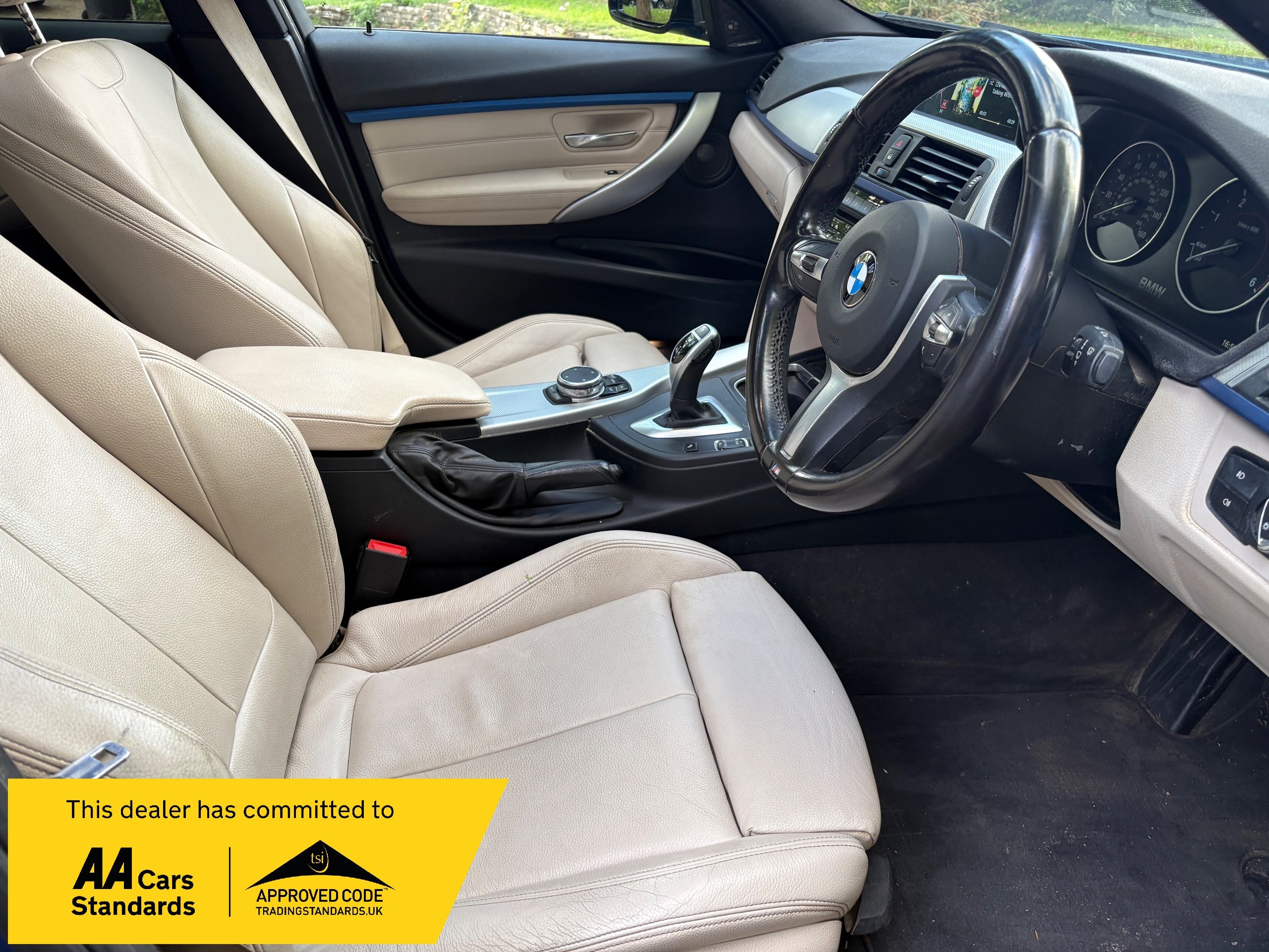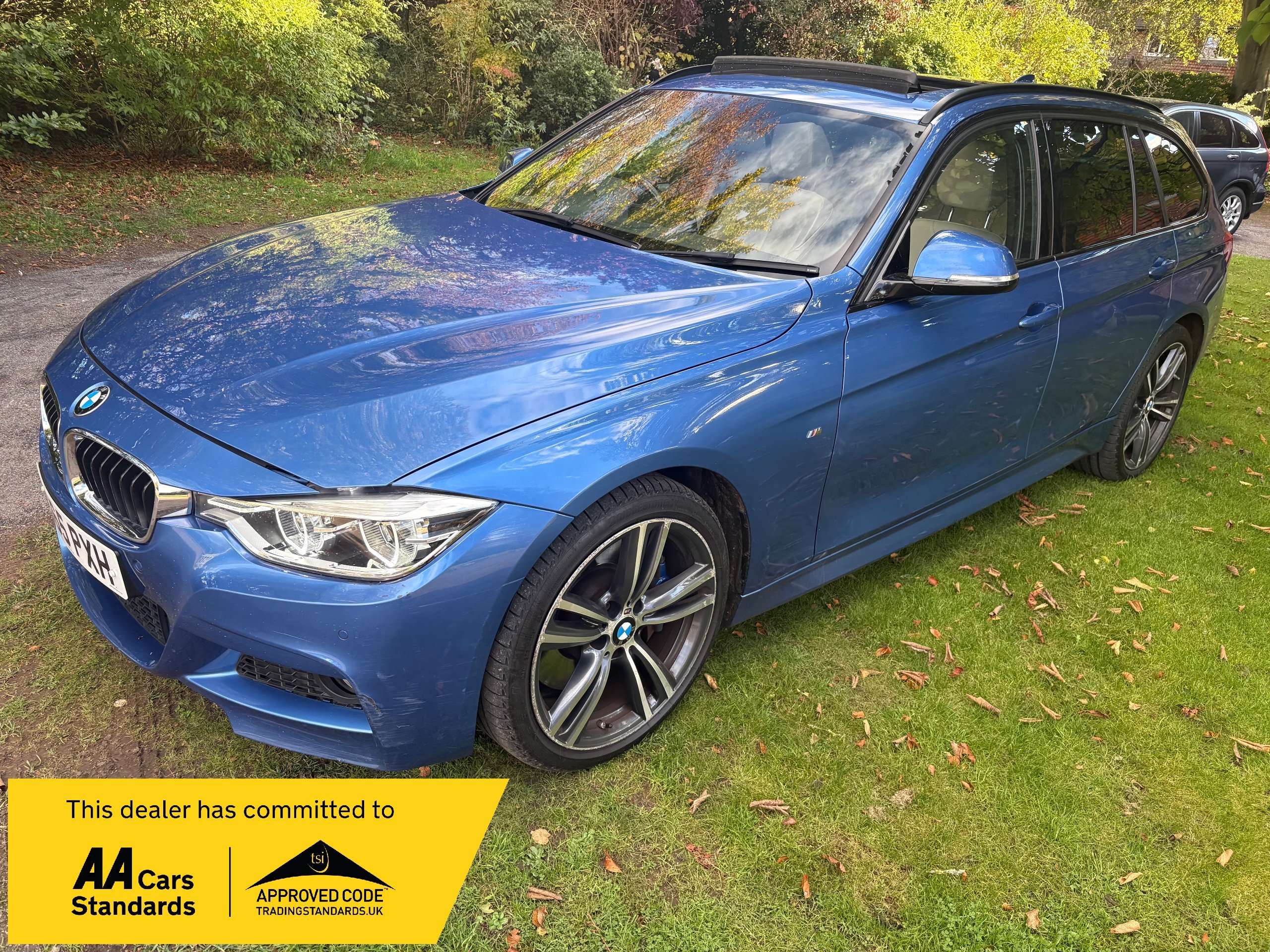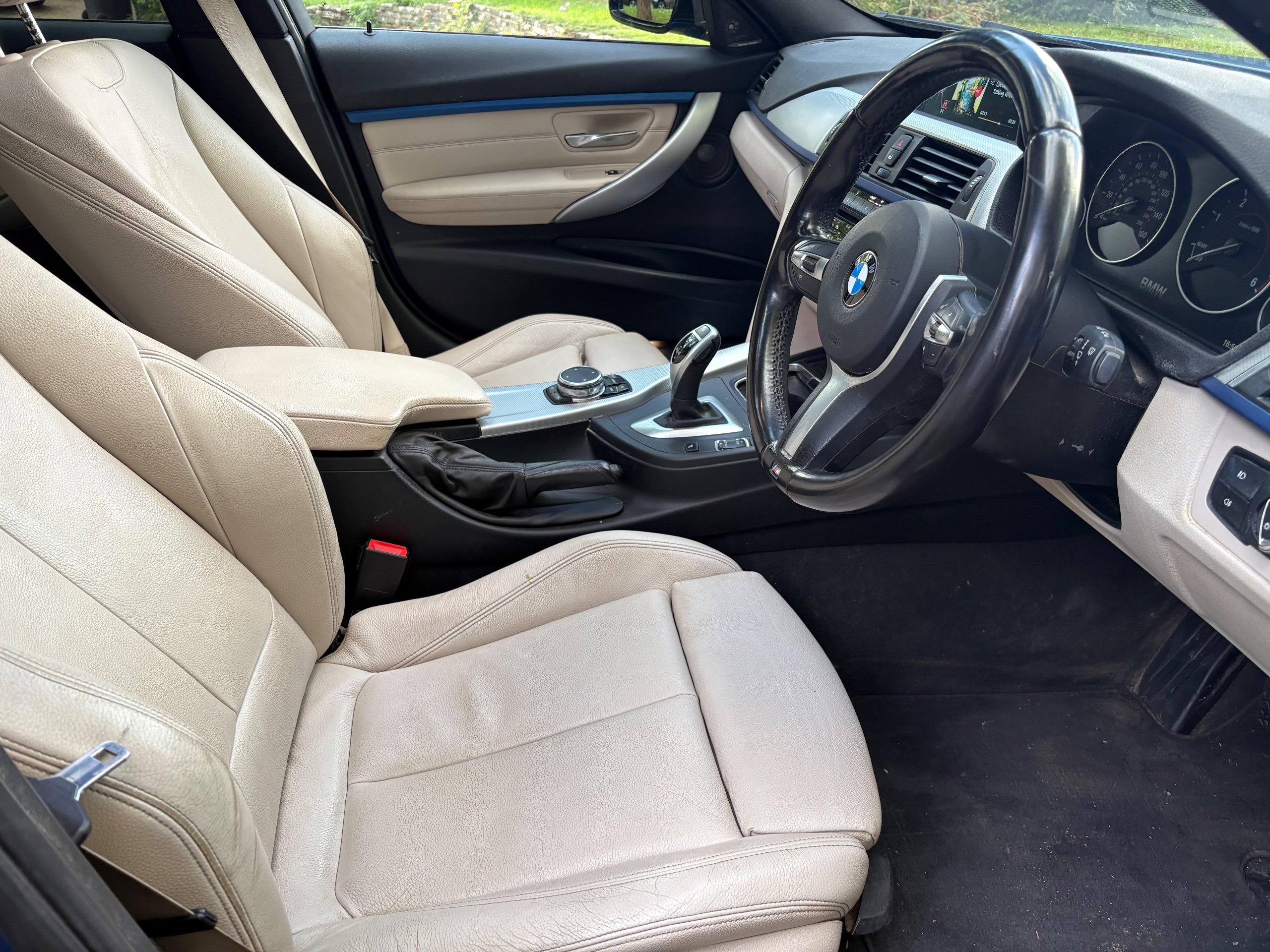 NOW WHAT A BEAUTIFUL LOW MILEAGE EXAMPLE OF A RARE SPEC AND ONE OF THE BEST COLOUR COMBINATIONS METALLIC BLUE WITH WHITE IVORY LEATHER FOR THIS MODEL OF A LOW MILEAGE 2015/65 BMW 335 M SPORT TOURING AUTOMATIC TOP OF THE RANGE AND A FANTASTIC SPEC , ONLY DONE 68,000 MILES AND A FULL SERVICE HISTORY 2. PRIVATE OWNERS AND AN EX DEMONSTRATOR FOR BMW HENCE THE HIGH SPEC , INC PANORAMIC ROOF INC ELECTRIC SUNROOF , ETC JUST TOO MUCH TOO LIST , SUPERB POWER AND TORQUE FROM ITS 3.0 TURBO ENGINE THATS SOUNDS VERY GRUNTY INDEED WITH LOADS OF POWER AND DOES AN AMAZING 50-60 MPG , BUT THIS EXAMPLE LOOKS AND DRIVES BEAUTIFULLY AND WE HIGHLY RECOMMEND THIS FINE EXAMPLE ,WILL COME WITH NEW MOT WITH NO ADVISORIES AND 12 MONTHS EXTENDABLE UPTO 36 MONTHS WARRANTY , SO GET IT RESERVED QUICKLY AS THIS RARE MODEL IS HARD TO FIND IN THIS COLOUR COMBINATION GUYS !!!