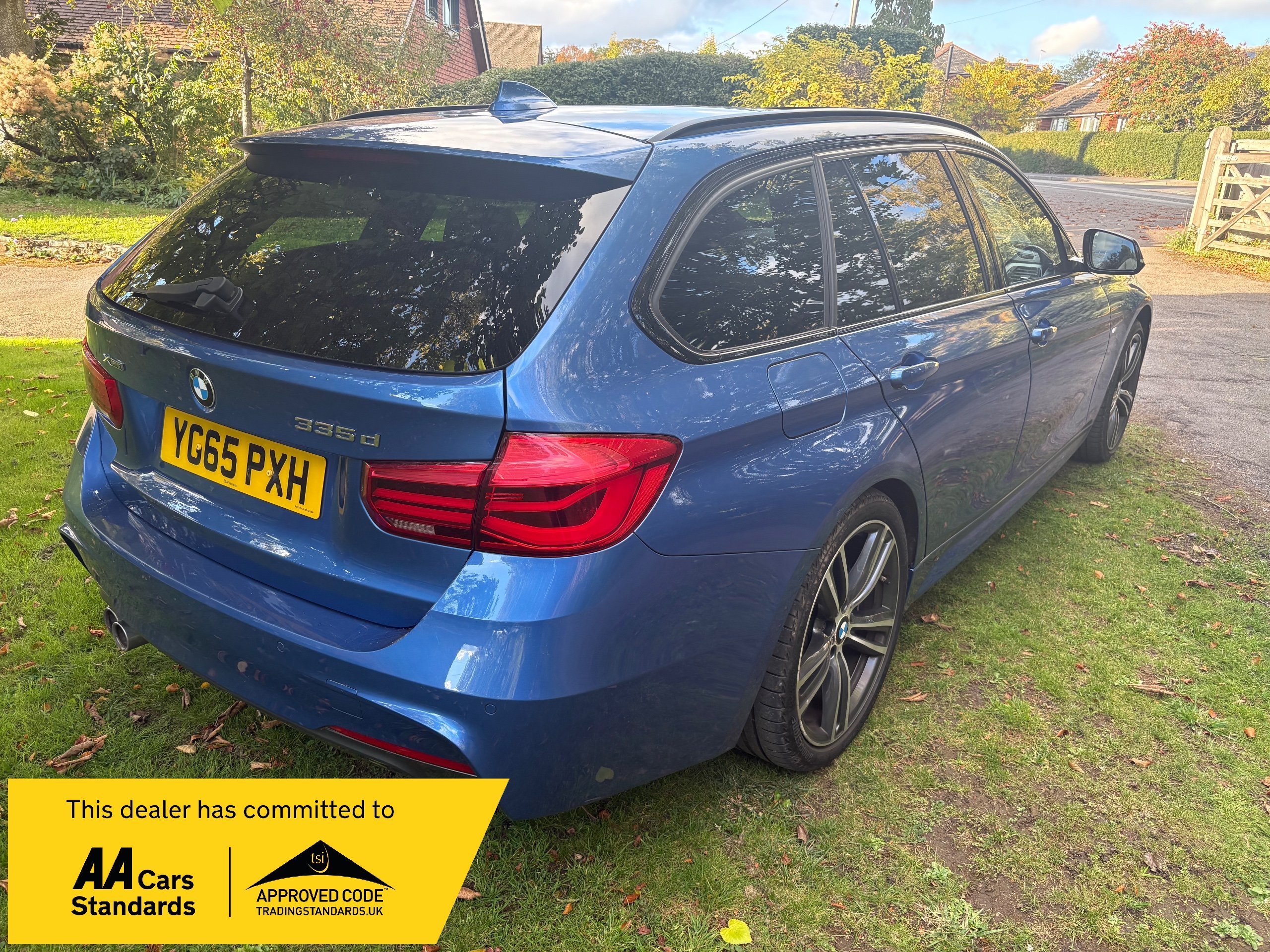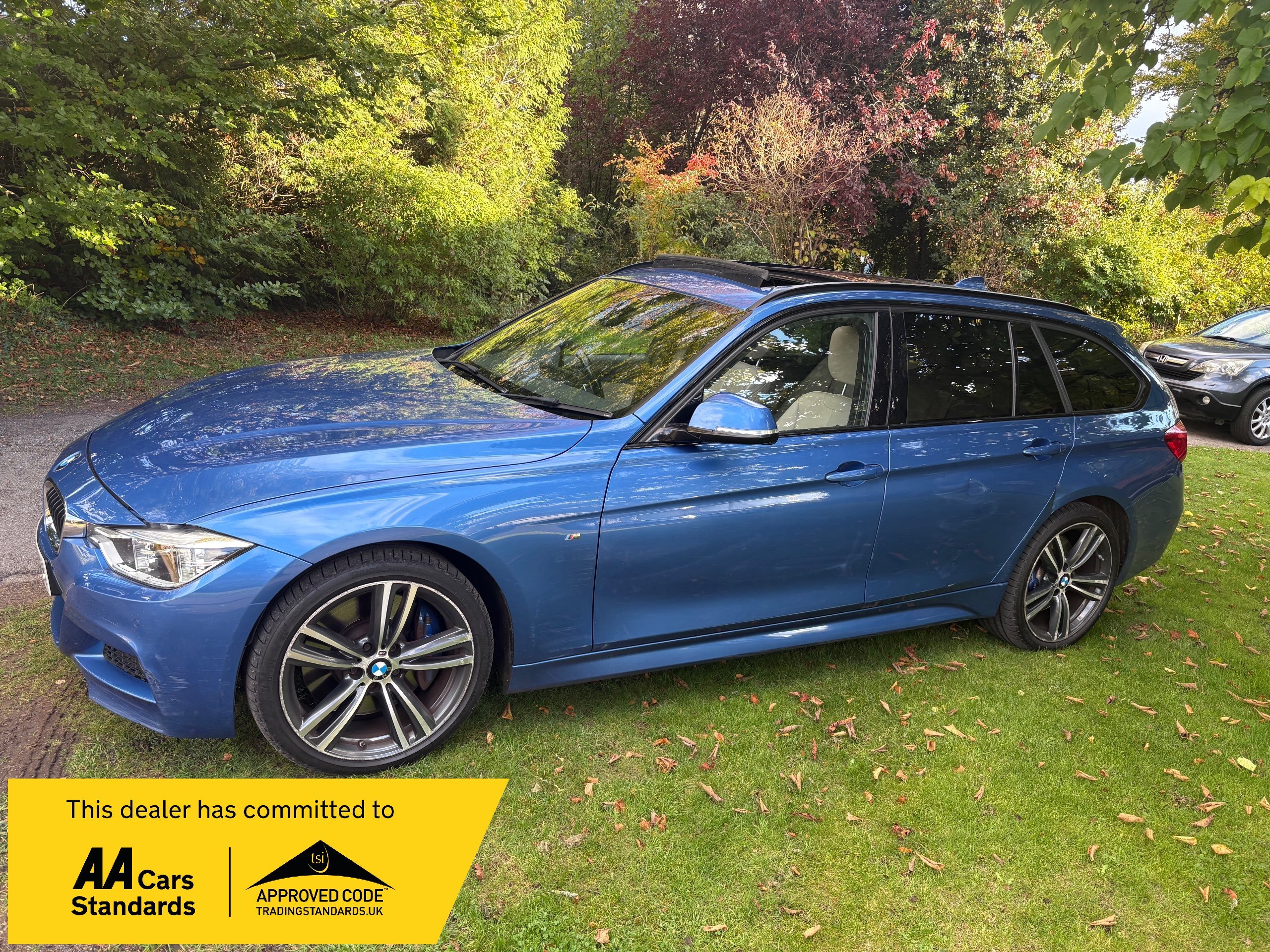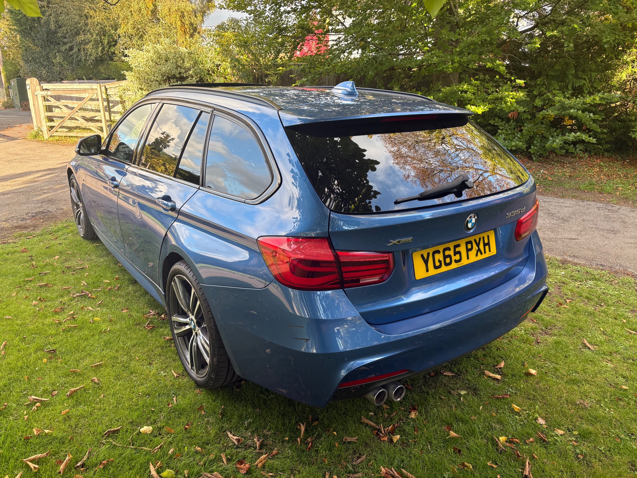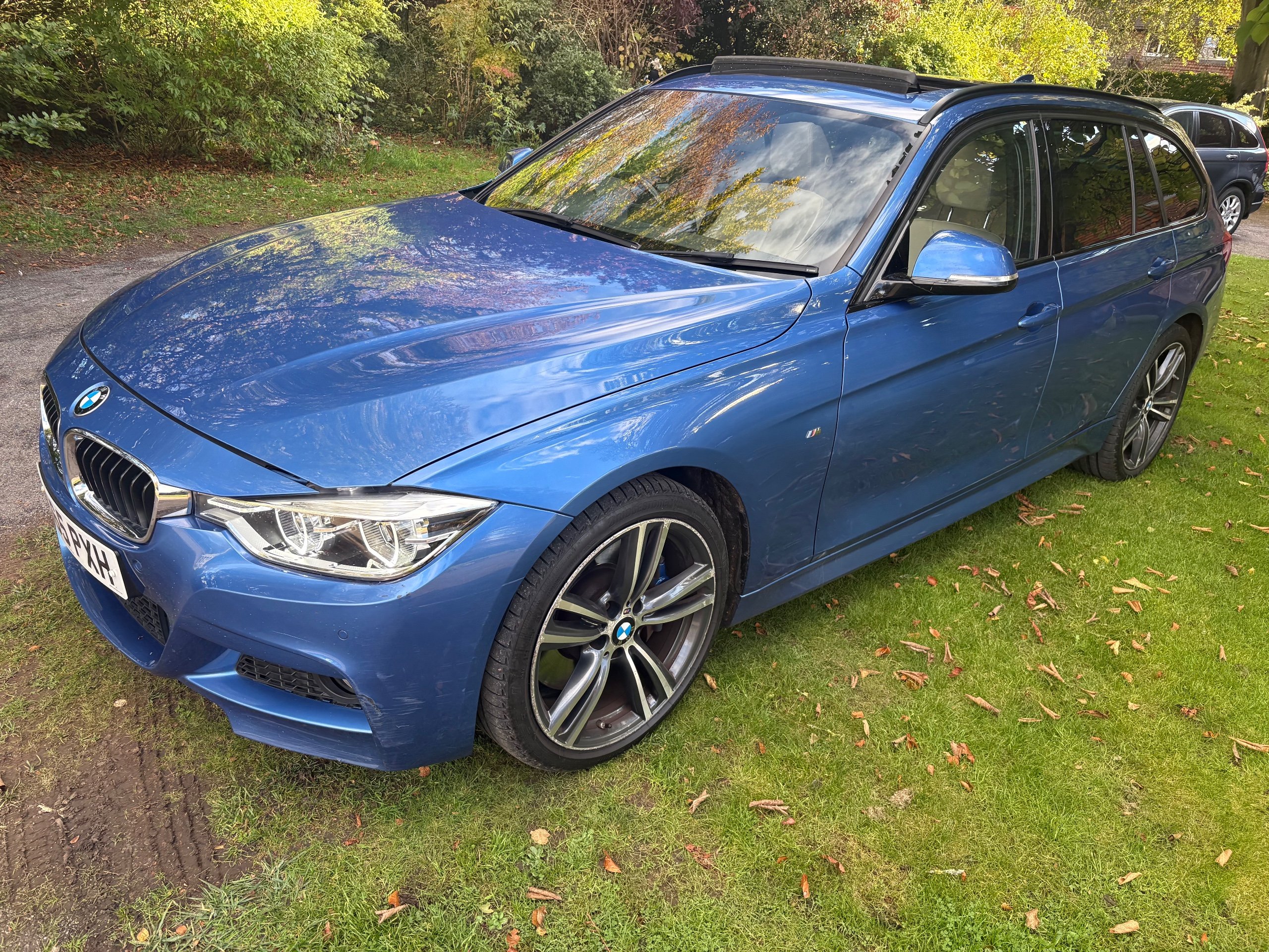 NOW WHAT A BEAUTIFUL LOW MILEAGE EXAMPLE OF A RARE SPEC AND ONE OF THE BEST COLOUR COMBINATIONS METALLIC BLUE WITH WHITE IVORY LEATHER FOR THIS MODEL OF A LOW MILEAGE 2015/65 BMW 335 M SPORT TOURING AUTOMATIC TOP OF THE RANGE AND A FANTASTIC SPEC , ONLY DONE 68,000 MILES AND A FULL SERVICE HISTORY 2. PRIVATE OWNERS AND AN EX DEMONSTRATOR FOR BMW HENCE THE HIGH SPEC , INC PANORAMIC ROOF INC ELECTRIC SUNROOF , ETC JUST TOO MUCH TOO LIST , SUPERB POWER AND TORQUE FROM ITS 3.0 TURBO ENGINE THATS SOUNDS VERY GRUNTY INDEED WITH LOADS OF POWER AND DOES AN AMAZING 50-60 MPG , BUT THIS EXAMPLE LOOKS AND DRIVES BEAUTIFULLY AND WE HIGHLY RECOMMEND THIS FINE EXAMPLE ,WILL COME WITH NEW MOT WITH NO ADVISORIES AND 12 MONTHS EXTENDABLE UPTO 36 MONTHS WARRANTY , SO GET IT RESERVED QUICKLY AS THIS RARE MODEL IS HARD TO FIND IN THIS COLOUR COMBINATION GUYS !!!