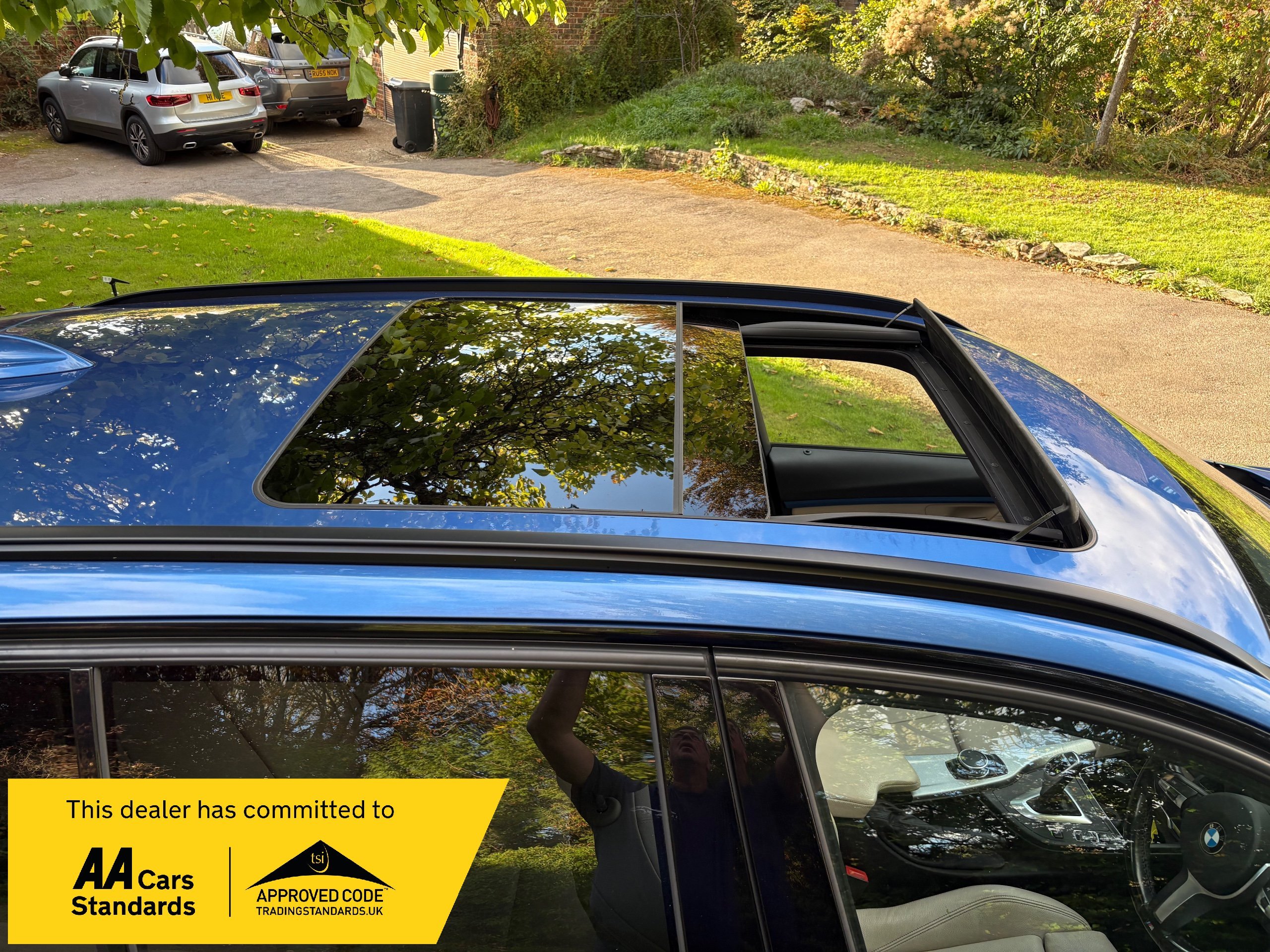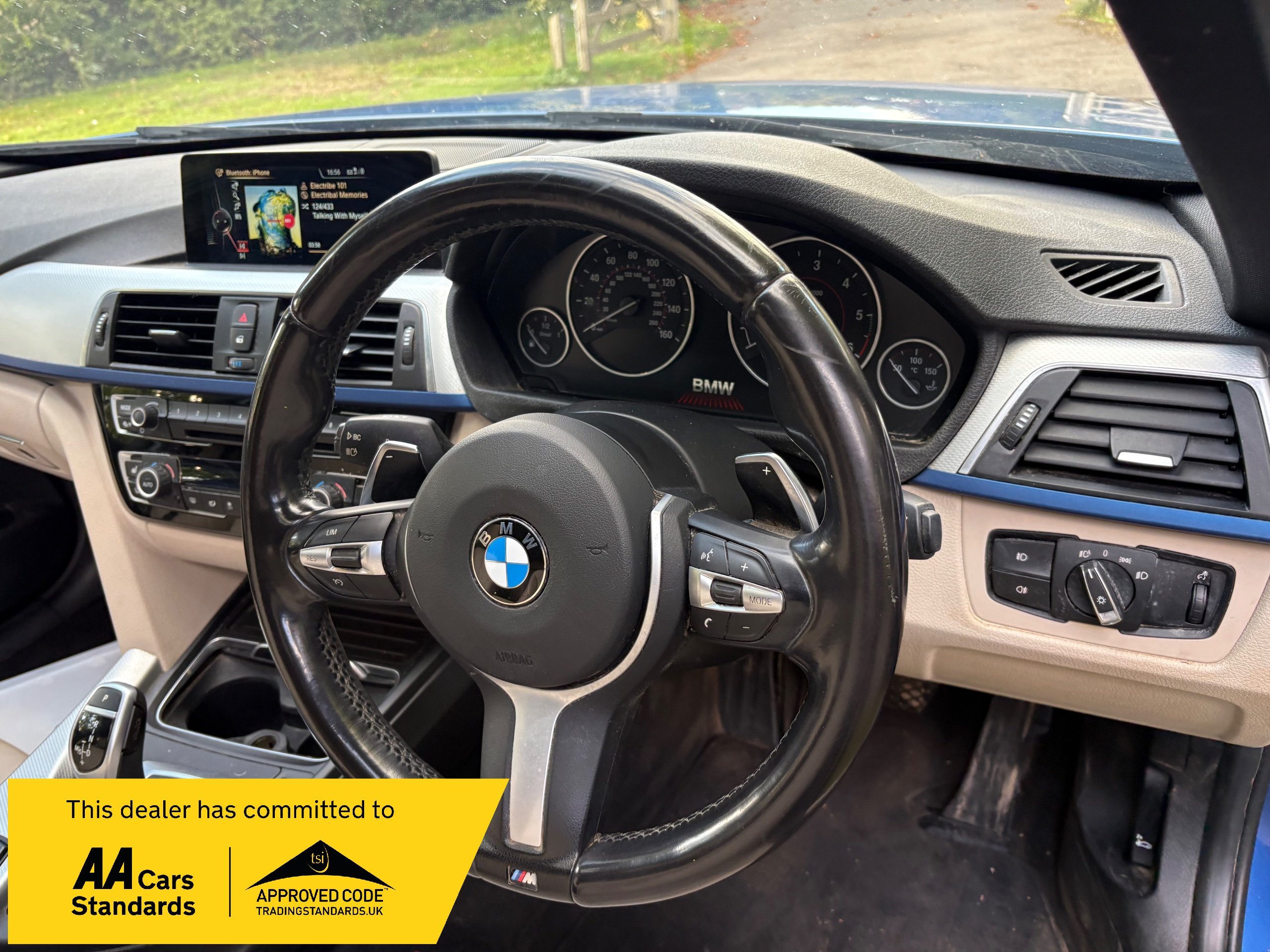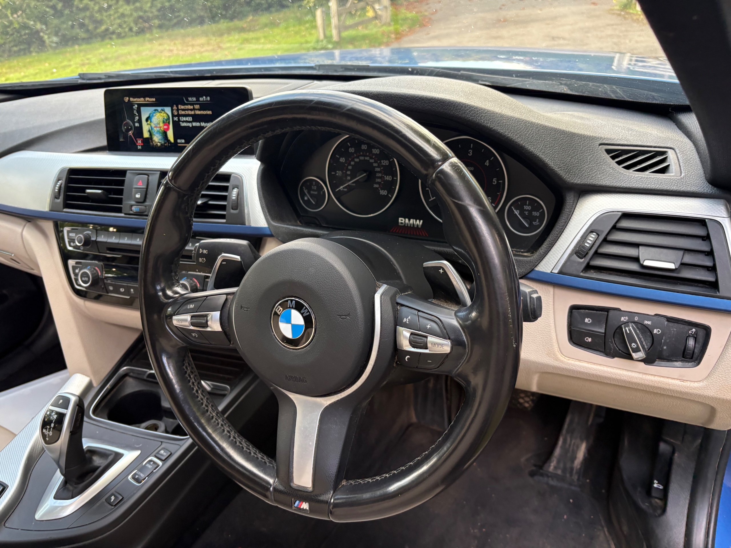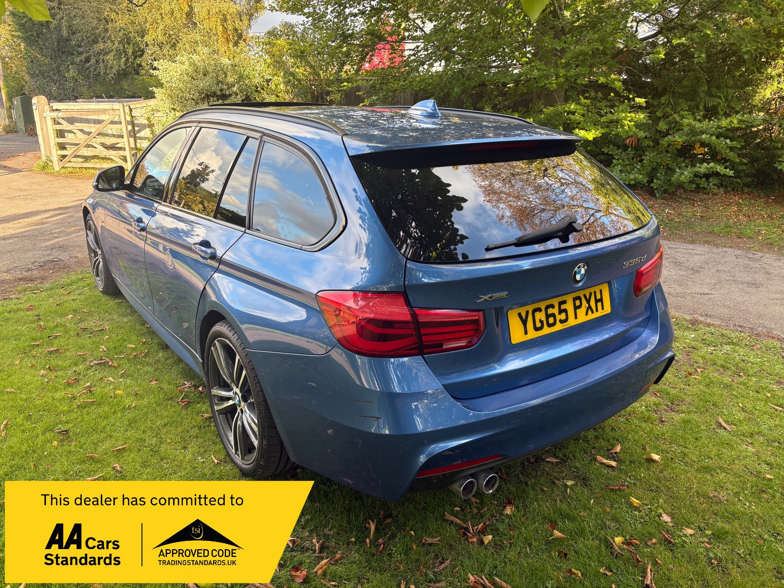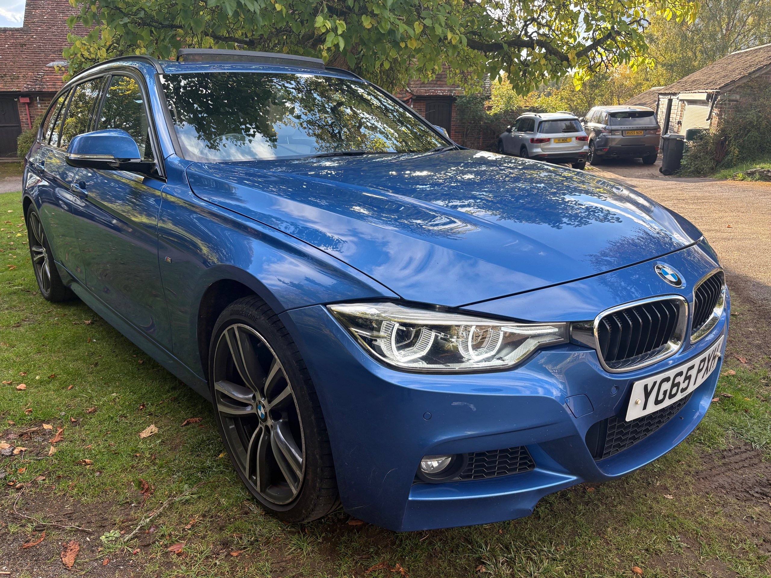 NOW WHAT A BEAUTIFUL LOW MILEAGE EXAMPLE OF A RARE SPEC AND ONE OF THE BEST COLOUR COMBINATIONS METALLIC BLUE WITH WHITE IVORY LEATHER FOR THIS MODEL OF A LOW MILEAGE 2015/65 BMW 335 M SPORT TOURING AUTOMATIC TOP OF THE RANGE AND A FANTASTIC SPEC , ONLY DONE 68,000 MILES AND A FULL SERVICE HISTORY 2. PRIVATE OWNERS AND AN EX DEMONSTRATOR FOR BMW HENCE THE HIGH SPEC , INC PANORAMIC ROOF INC ELECTRIC SUNROOF , ETC JUST TOO MUCH TOO LIST , SUPERB POWER AND TORQUE FROM ITS 3.0 TURBO ENGINE THATS SOUNDS VERY GRUNTY INDEED WITH LOADS OF POWER AND DOES AN AMAZING 50-60 MPG , BUT THIS EXAMPLE LOOKS AND DRIVES BEAUTIFULLY AND WE HIGHLY RECOMMEND THIS FINE EXAMPLE ,WILL COME WITH NEW MOT WITH NO ADVISORIES AND 12 MONTHS EXTENDABLE UPTO 36 MONTHS WARRANTY , SO GET IT RESERVED QUICKLY AS THIS RARE MODEL IS HARD TO FIND IN THIS COLOUR COMBINATION GUYS !!!